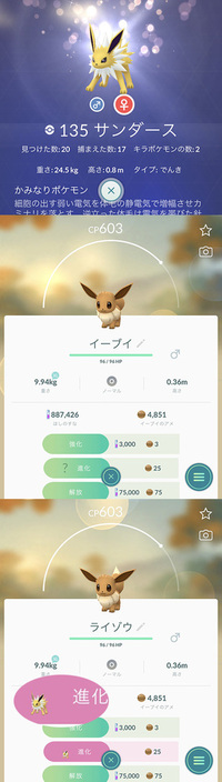 ポケモンgo イーブイを進化させて サンダース をゲットしました 特定の名前に変えることで進化先も指定可能